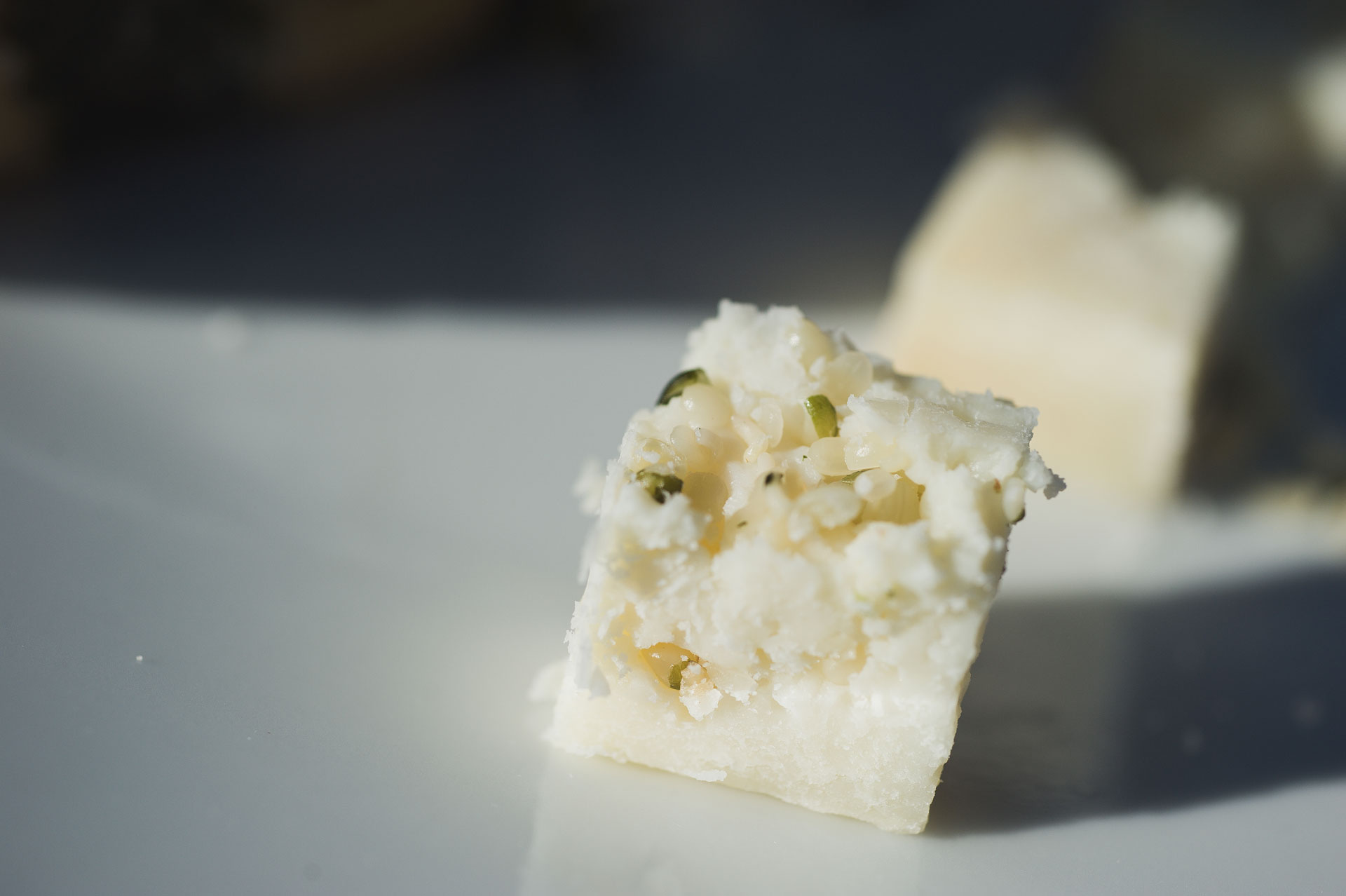 Raw sheep milk just milked and brought up to a temperature of 37°C in a copper kettle, the addition of rennet causes the subsequent breaking of the curd which divides the mass from the whey. The mass or dough put into molds and pressed. Following the salting, the cheese is aged with Hemp.